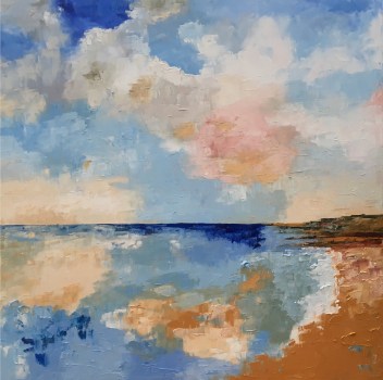 Cloud Reflections palette knife oil painting in a studio series inspired by many visits to Whitstable, Kent