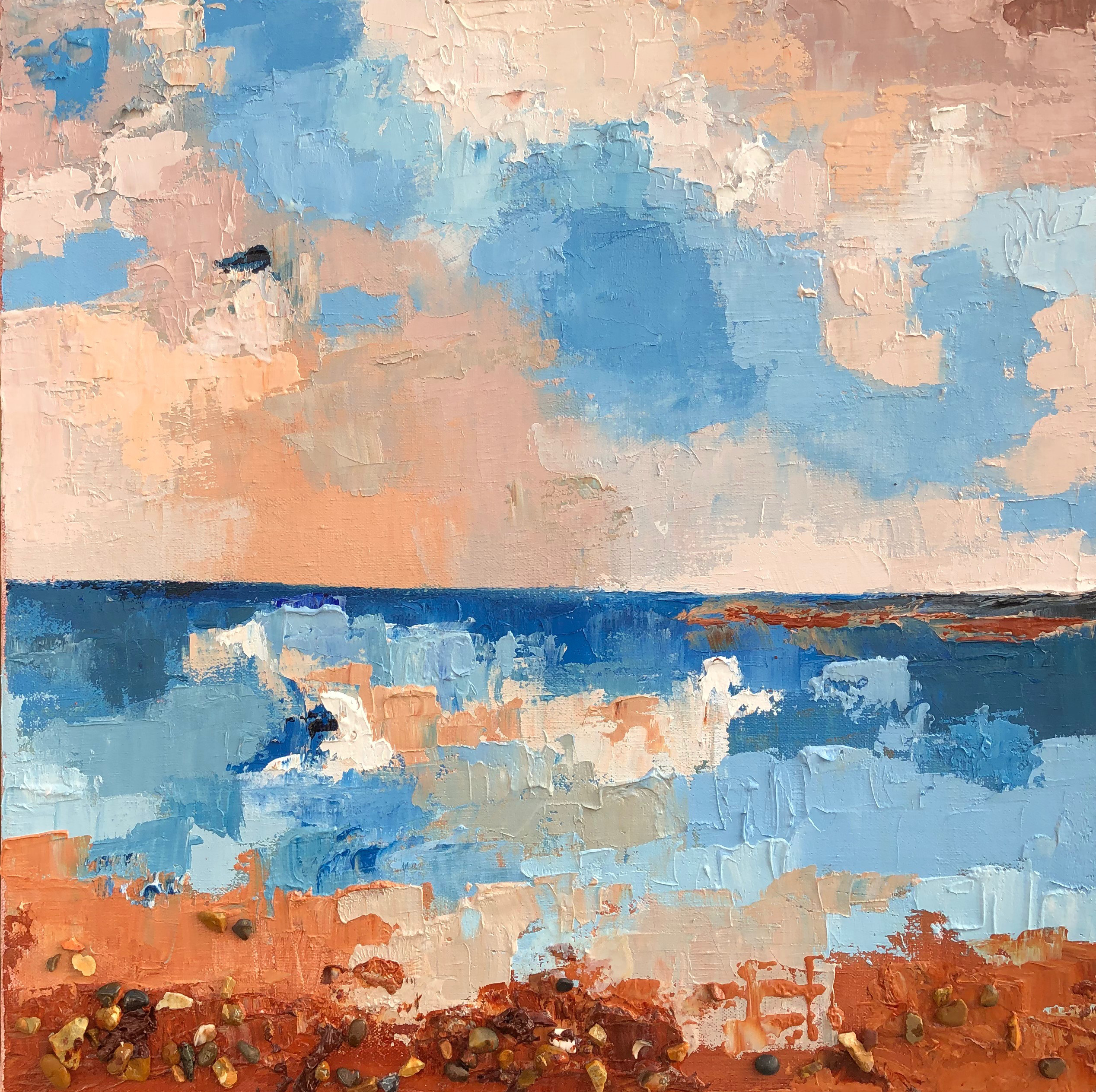 Pebbles – oil on hand stretched canvas 16″ x 16″ £ 385