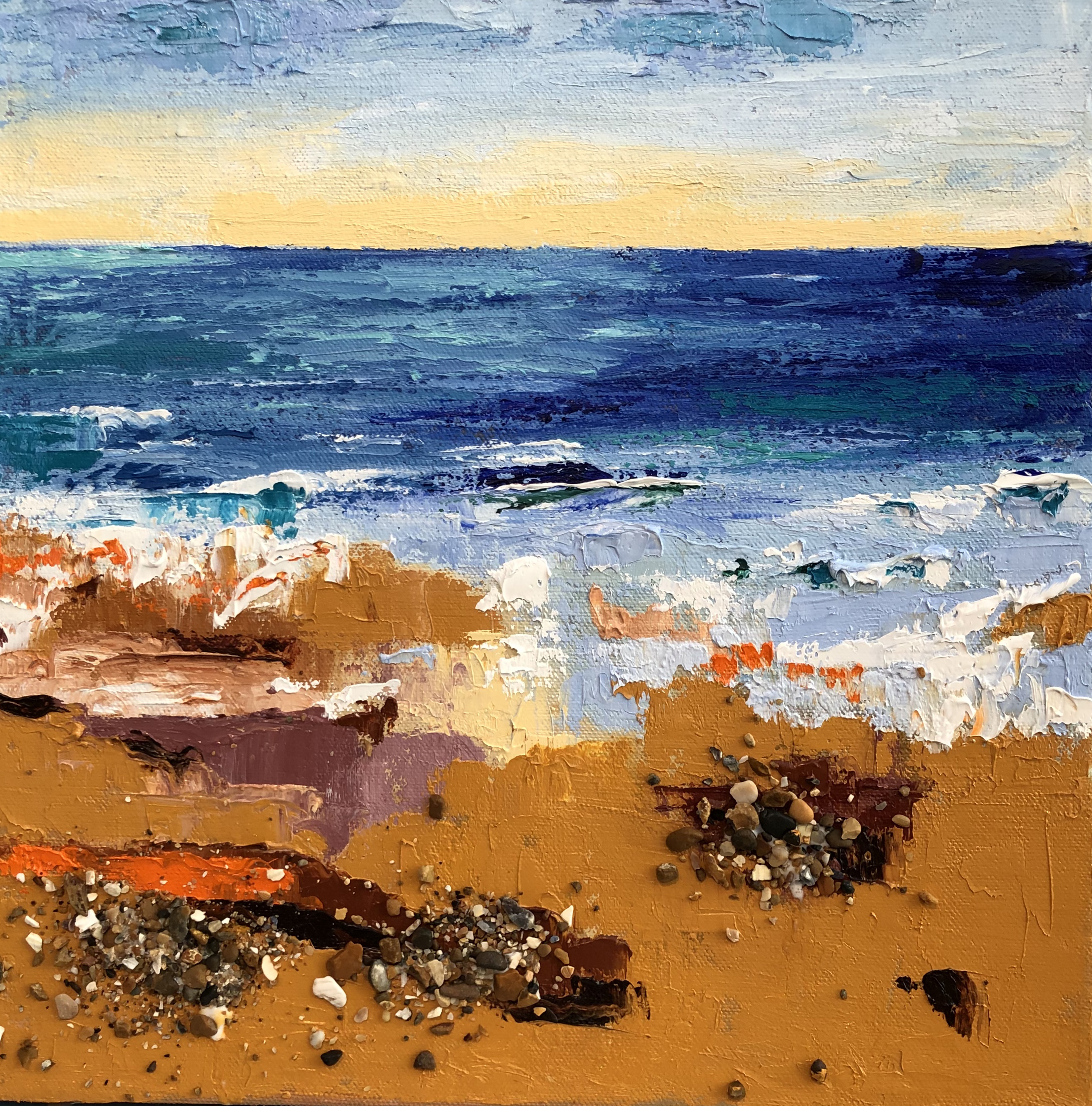 Previous Image Next Image APA 20 05 Pebbles are Revealed at Low Tide Pebbles are Revealed at Low Tide Oil on Canvas 12″ x 12″ £ 195