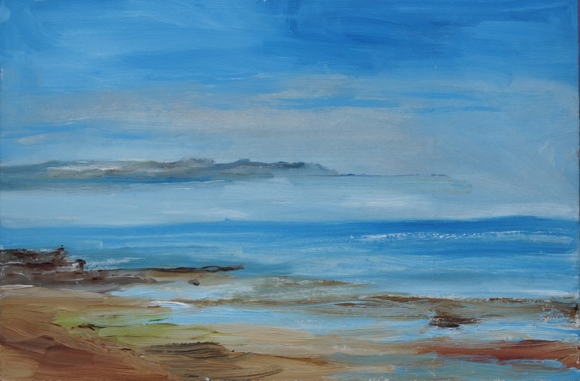 Sheppey in the Haze, Whitstable Low Tide 11″ x 7″ oil on MDF framed, £ 155