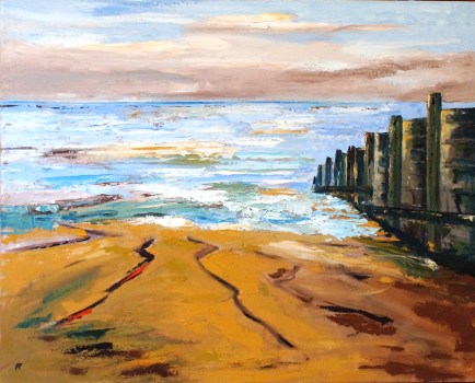Palette knife oil painting of Whitstable Bay on a hazy winter day