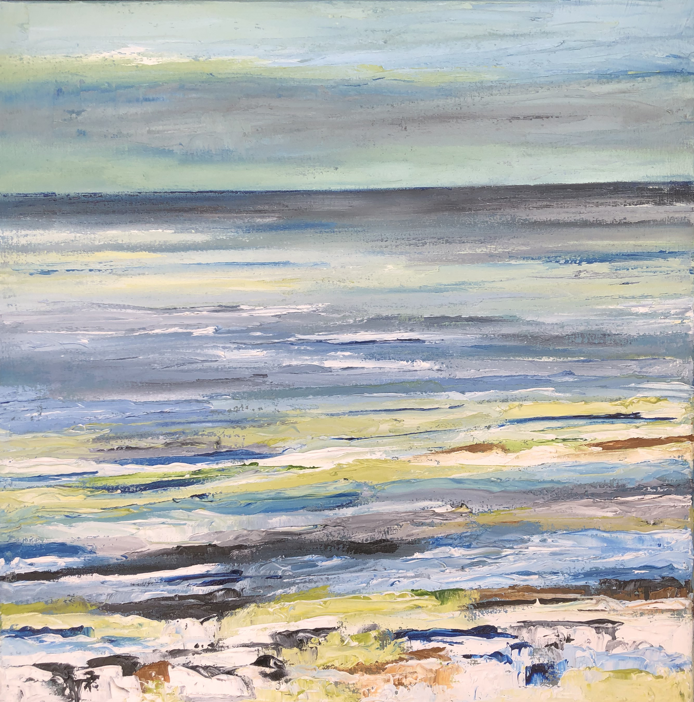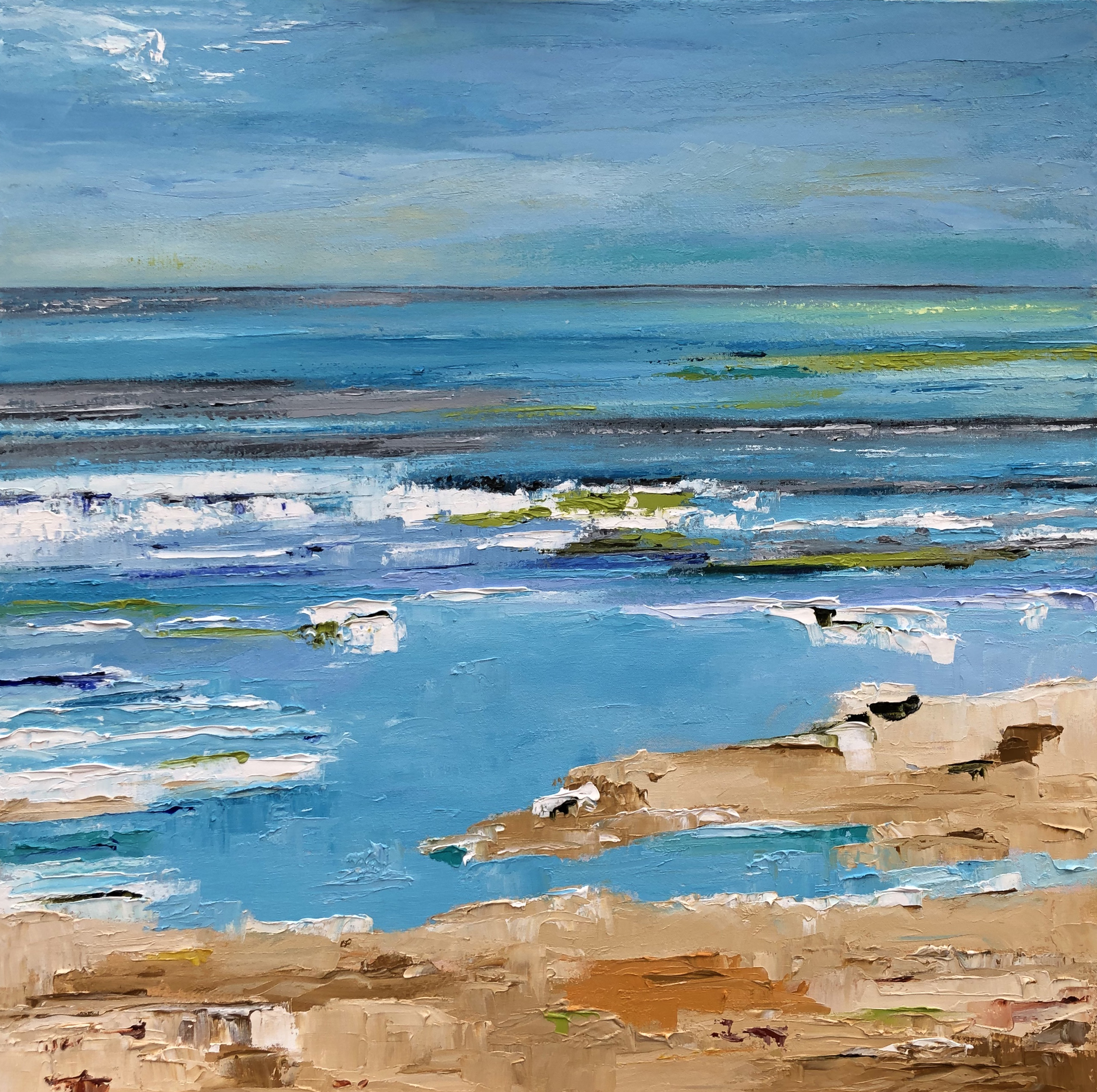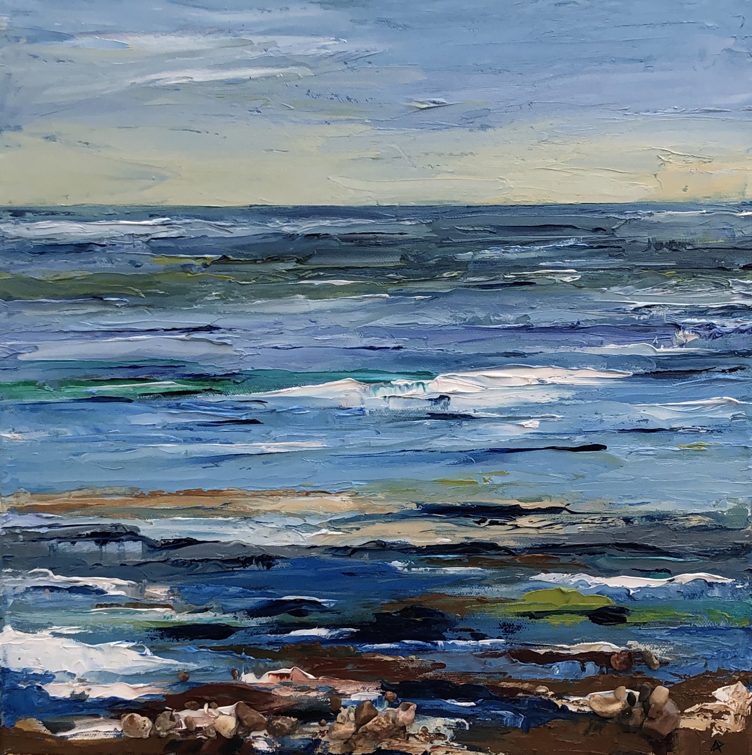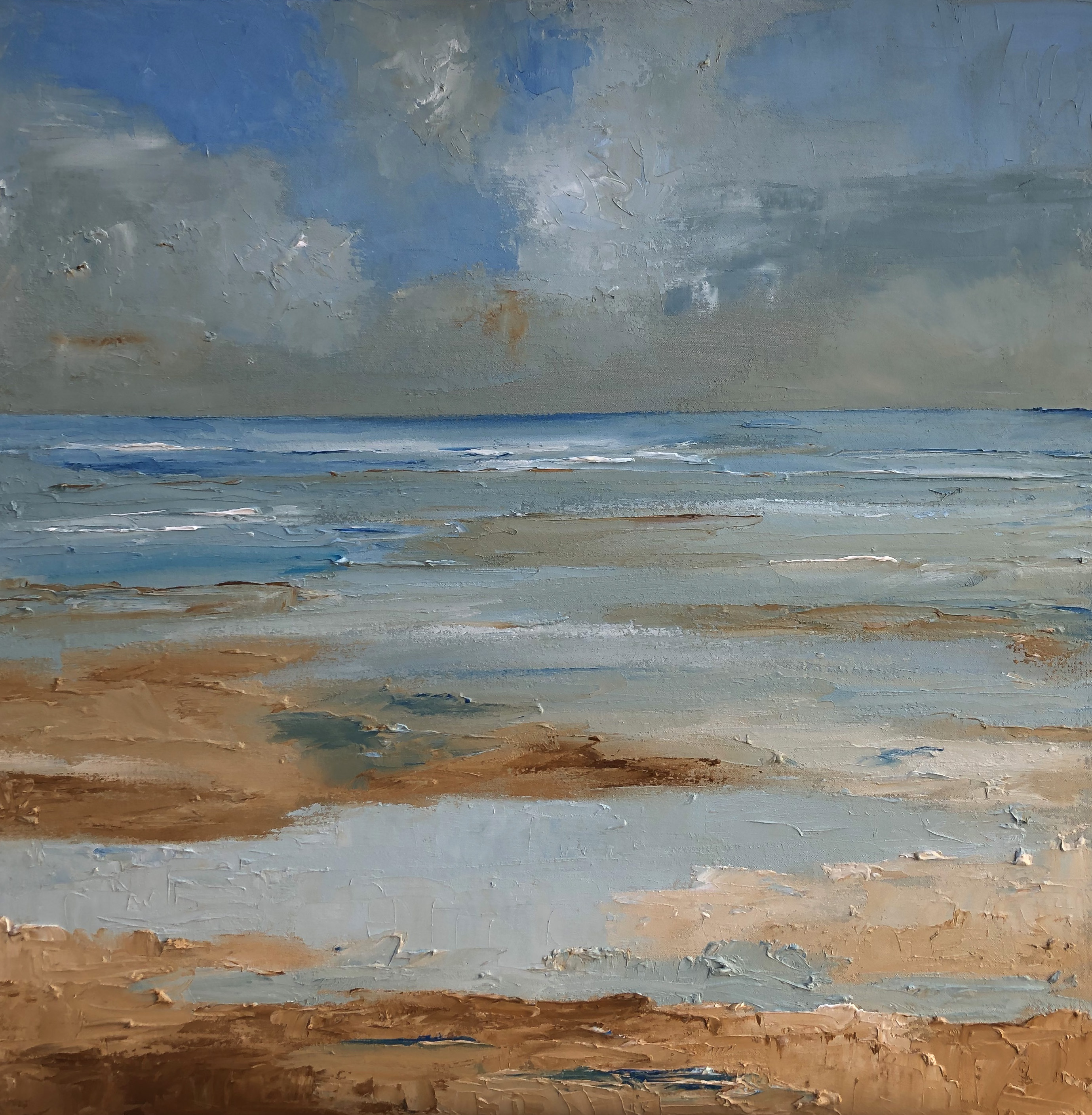 There is something magical about the ocean. The constant movement and change, with rolling waves and rise and fall of the daily tides, the sound of the ocean, the smell of the water. Ann paints the land, sea and sky in oils on both large and small canvases, focussing on the state of the tide and weathers at various times of day and year, inspired by painting on the beach, sketches, photos and just being there. Ann draws her inspiration from the coasts of Kent and Cornwall; many paintings are inspired by the beaches in Whitstable.