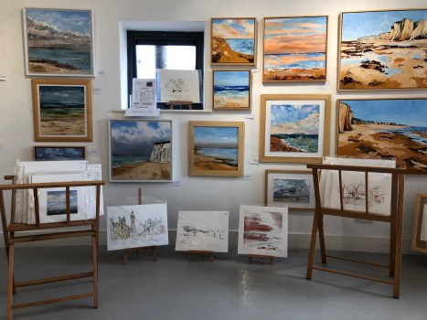 Horsebridge Arts Centre Solo Exhibition 1st to 14th August 2018 Art on the Beach this is a photo of the exhibition showing seascapes and prints